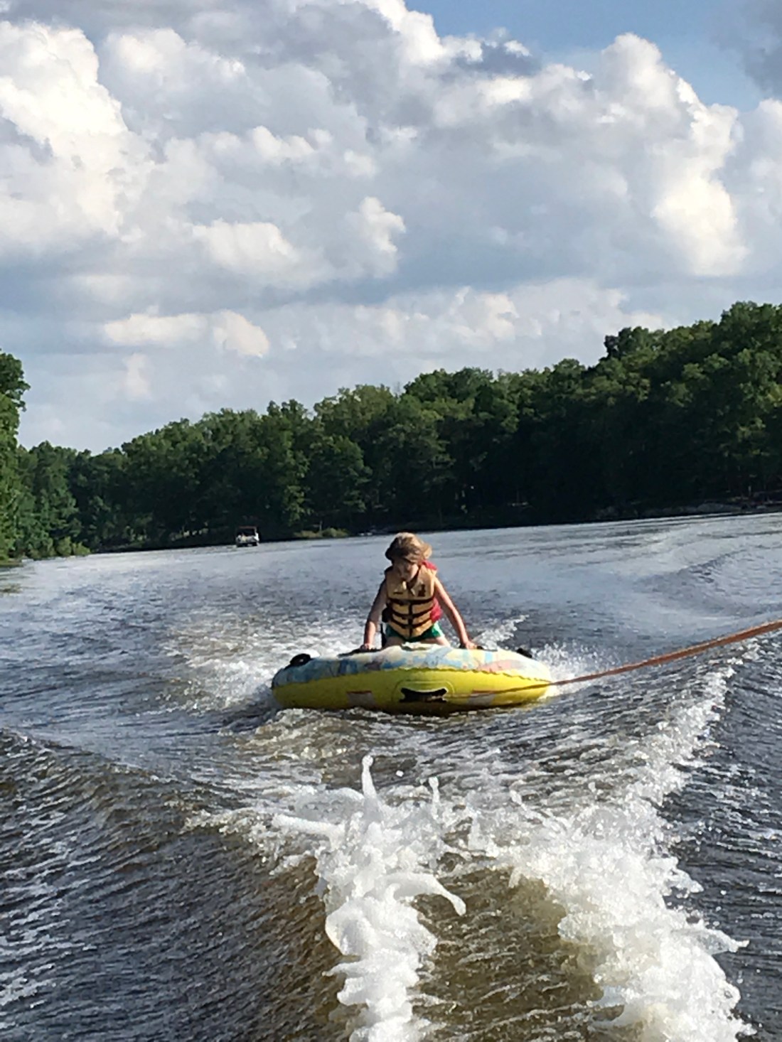 With all that’s going on in our lives, we had a pleasant Memorial Day weekend, and it was awesome. Joe & Trisha came down Sat and Joe did yard work for Billy. We babysat Nora and Bailey so they could go out for their 4th wedding anniversary, and we all had fun. Sunday we boated, and Nora was fearless on the tube. Then she was fearless in the kneeboard! Trisha tried doubles, and Joe wakeboarded. The waters still pretty frigid, but we swam all weekend, too. Jason and Janice caravaned up with all the kids and foster kids Monday and all the kids got to tube several times and swim. We had a delicious cookout and Cindy & Sam came over, too. Billy was extremely fatigued on Sun, but better on Mon., so that was good.