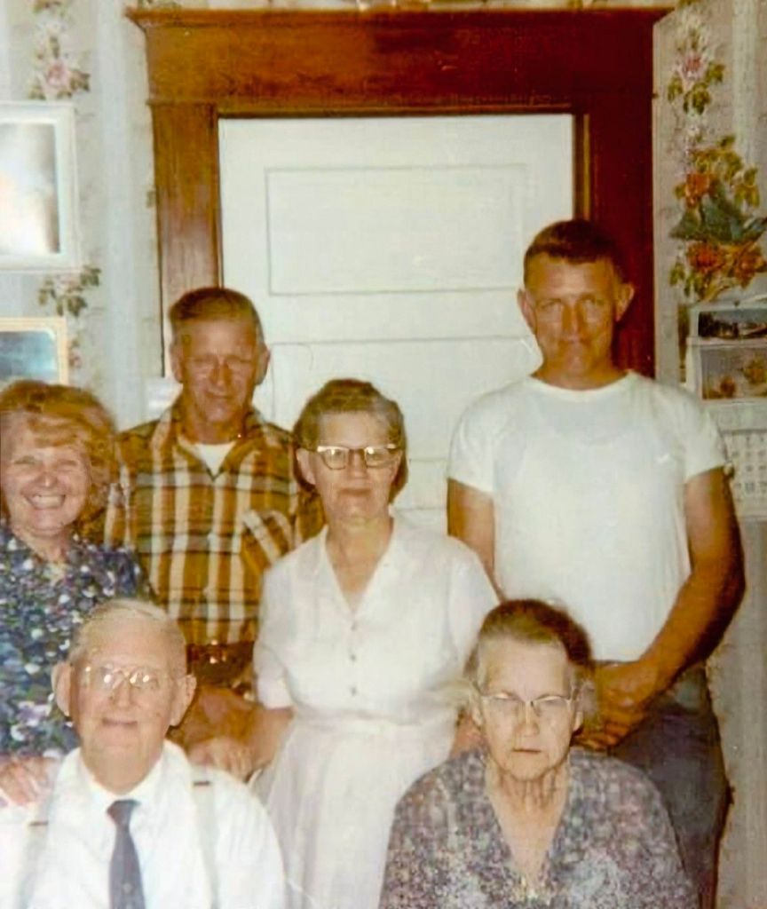 A photograph of my great-grandparents with my Grandmother in a white dress, her sister and brothers around her.
